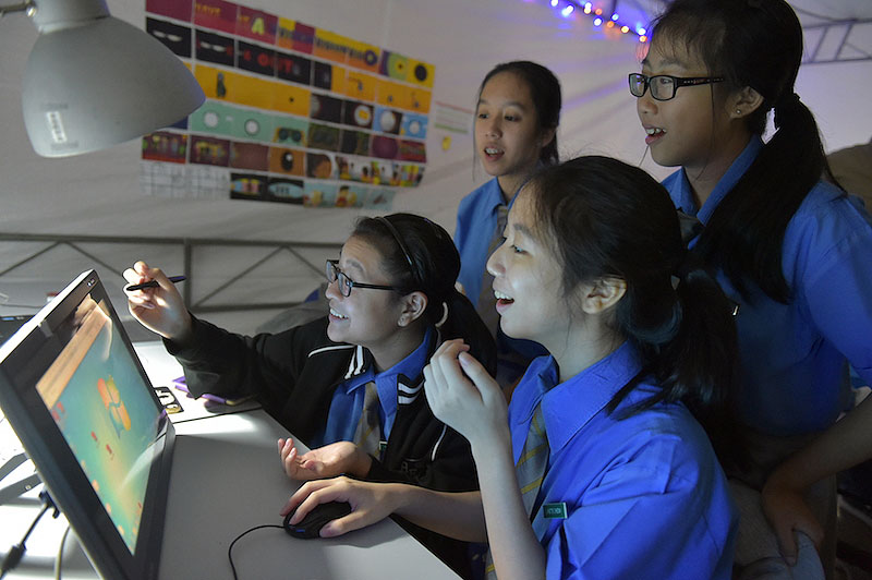 For the team from Cedar Secondary School, the students chose to work exclusively in the digital realm. They are animating colourful and playful visuals to a fun and pun-filled poem that they have written, illustrating how each and every person can play a part in Total Defence.