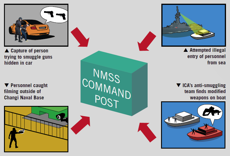 A series of seemingly unrelated incidents are reported by various maritime and land-based agencies to the NMSS. The NMSS analyses these incidents and assesses that a potential threat is developing, and conducts integrated planning and coordination with relevant agencies to strengthen security and plan a national response.