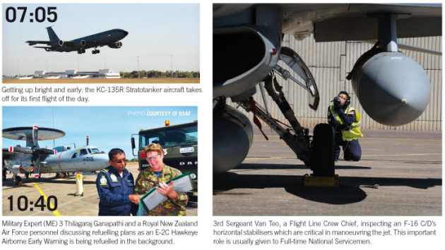 A very long day finally comes to a close for the Rectification Team, who have stayed back to ensure that all the planes are in operational condition for the next day of the exercise. What looks like a routine job ends at 5 am instead of 2 am, because of a particularly stubborn defect. Team member ME2 Lim Chee Wee shrugs it off as just part of the natural process of his work.