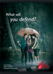 Complementing the online video contest are ZoCards (see below), a popular advertising medium in the form of postcards. The question "What will you defend?" is posed on the back of a series of five cards and the public is invited to answer the question and send the cards back to form a montage that represents the views of Singaporeans.