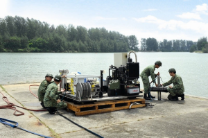 "It's designed to sit on the water surface and draw the cleanest water possible, away from sediment which might lie in the depths," said Staff Sergeant Vernon Ng.