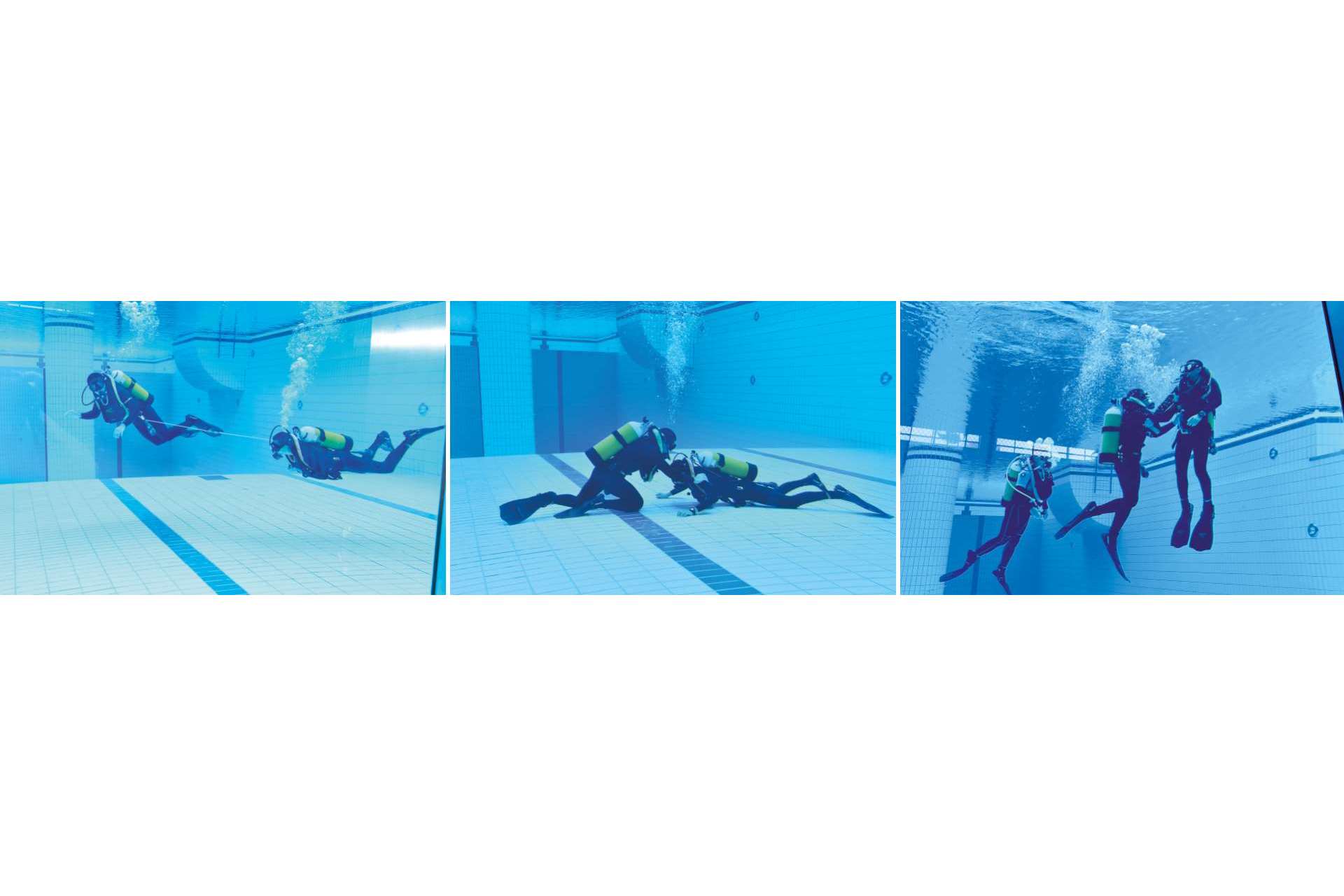 The pair demonstrated how they shared their air supply by taking turns to breathe from one mouthpiece. They also performed another drill. One of them fell "unconscious" and his buddy went to check on him and helped him to surface safely.