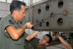 Currently he leads a team of technicians in the repair and maintenance of bridging equipment used by the Singapore Armed Forces' (SAF) Combat Engineers. Some equipment are used as floating platforms or rafts to ferry military equipment such as tanks, armoured personnel carriers, and three and five ton trucks across rivers and other water bodies.