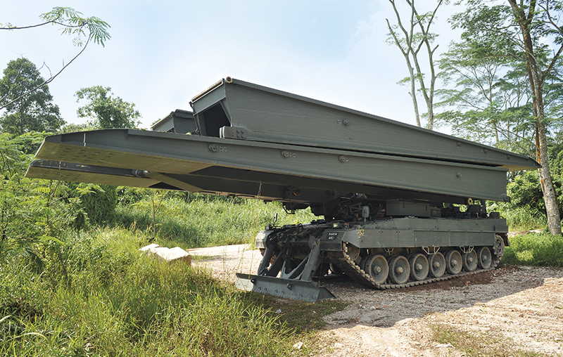 "Unlike older armoured bridges, the Leopard 2 Armoured Vehicle Launched Bridge (L2 AVLB) launches with a sliding action which gives it a lower profile and makes us less likely to draw enemy fire," explained 3SG Christopher Teow, Vehicle Commander L2 AVLB, Mechanised Engineer Company (MEC).