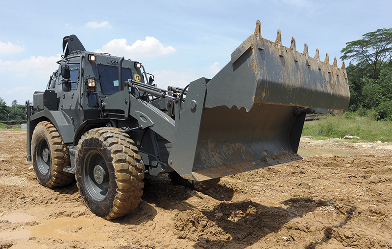 The 11.6 tonne HMP is armoured against small-arms fire. "I feel very well-protected in the HMP and there's this sense of power when you are operating it and lifting these massive weights or moving an enormous amount of earth," said 1SG Pradeep.