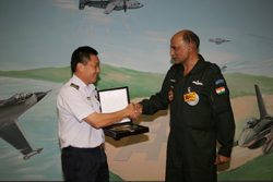 Participants from both air forces met up at PLAB on 20 Dec, when the two air exercise directors, the IAF's Group Captain (GP CAPT) Sandeep Chhabra and the RSAF's Colonel (COL) Lim Yeong Kiat, exchanged tokens of appreciation.