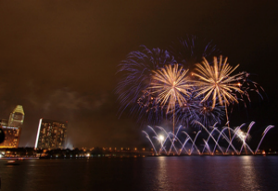 The Marina Bay night sky was set alight with a myriad of colourful fireworks on the opening night of the Singapore Fireworks Festival (SFF) 2006 on 5 Aug.