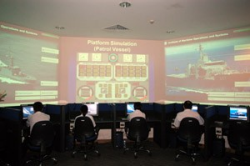 The Basic Naval Trainer (top) is used for the conduct of seamanship and gunnery training, while the Ship Handling Simulator (above) trains sailors in ship handling, seamanship, navigation, basic radar operation techniques and team level training for watch keepers.