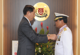 Deputy Prime Minister and Minister for Defence Teo Chee Hean conferred the Pingat Jasa Gemilang (Tentera) or Meritorious Service Medal (Military) - Singapore's prestigious military award - on the former Chief of Staff of the Indonesian Navy (TNI-AL), Admiral (ADM) Tedjo Edhy Purdijatno, at the Ministry of Defence on 3 Dec.