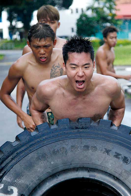 J - Whatever he asked us to do, he would do it with us. He's on the platform during morning PT and we are forced to look at him from the ground. So that we know whatever he asks us to do, he can do it better. And he's like 40-plus. It's a motivating factor - he's older but still fitter than us. Really lao kui (Hokkien for embarrassing) lor.