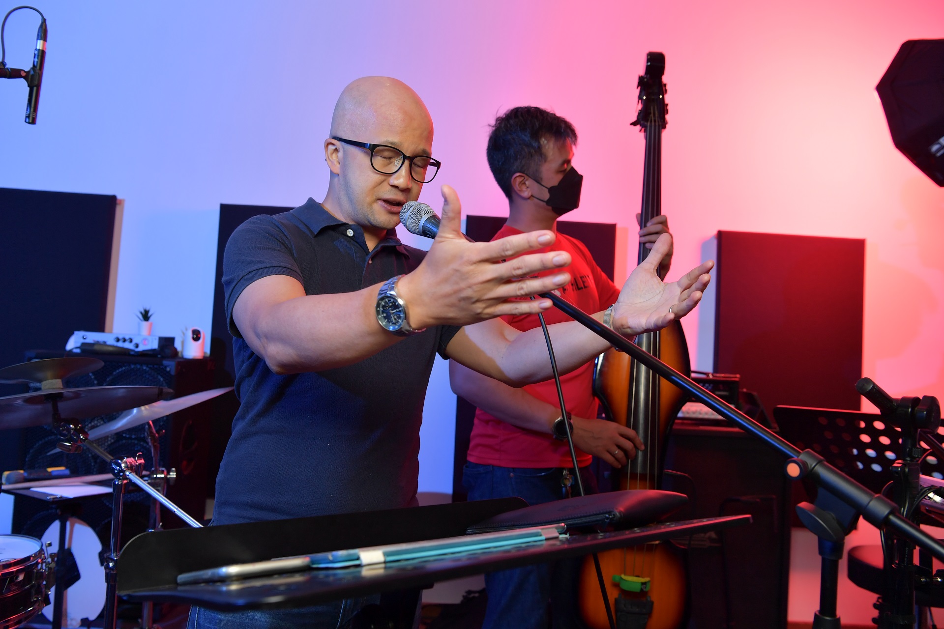 PIONEER bersembang dengan ahli-ahli kugiran di studio, di mana mereka sedang berlatih untuk rancangan Esplanade mereka yang akan datang, berjudul General Lee/Bertutur: Singaporeana. Kali ini, mereka ditemani "instrumen" kelima - penyair Leftenan (LTA) (NS) Laremy Lee, 39, yang akan menambah dimensi baharu dalam muzik mereka dengan persembahan kata pertuturan.