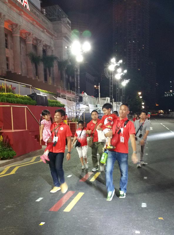 Mr Len Chua and his family had just finished watching the NDP rehearsals at the Padang on 11 Jul and were making their way out when he found that they were stranded near Swissotel the Stamford. His car was parked at Raffles Place and the route there was closed off to members of public.