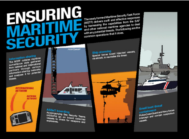 To combat the wide spectrum of such threats, the Republic of Singapore Navy's (RSN's) Coastal Command (COSCOM) was recently restructured to form the MSTF. Inaugurated on 19 Jan, the MSTF complements the Island Defence Headquarters and Air Defence Operations Command which are part of Singapore's comprehensive security measures.