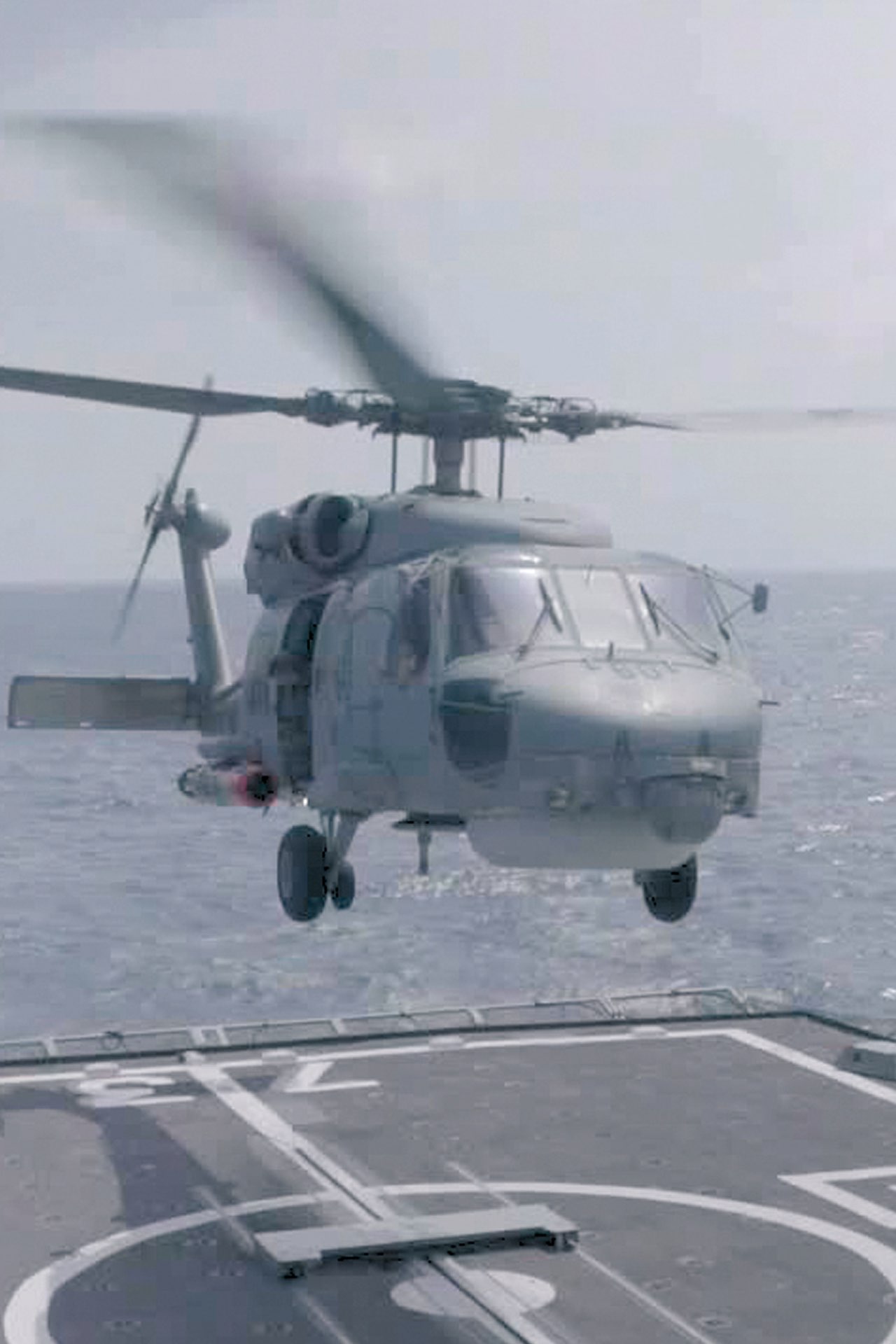 The faster and more mobile air assets functioned as forward eyes for the ships. The S-70B, for instance, combed the sea for potential threats lurking beneath the sea surface and investigated areas of interest with its dipping sonar.
