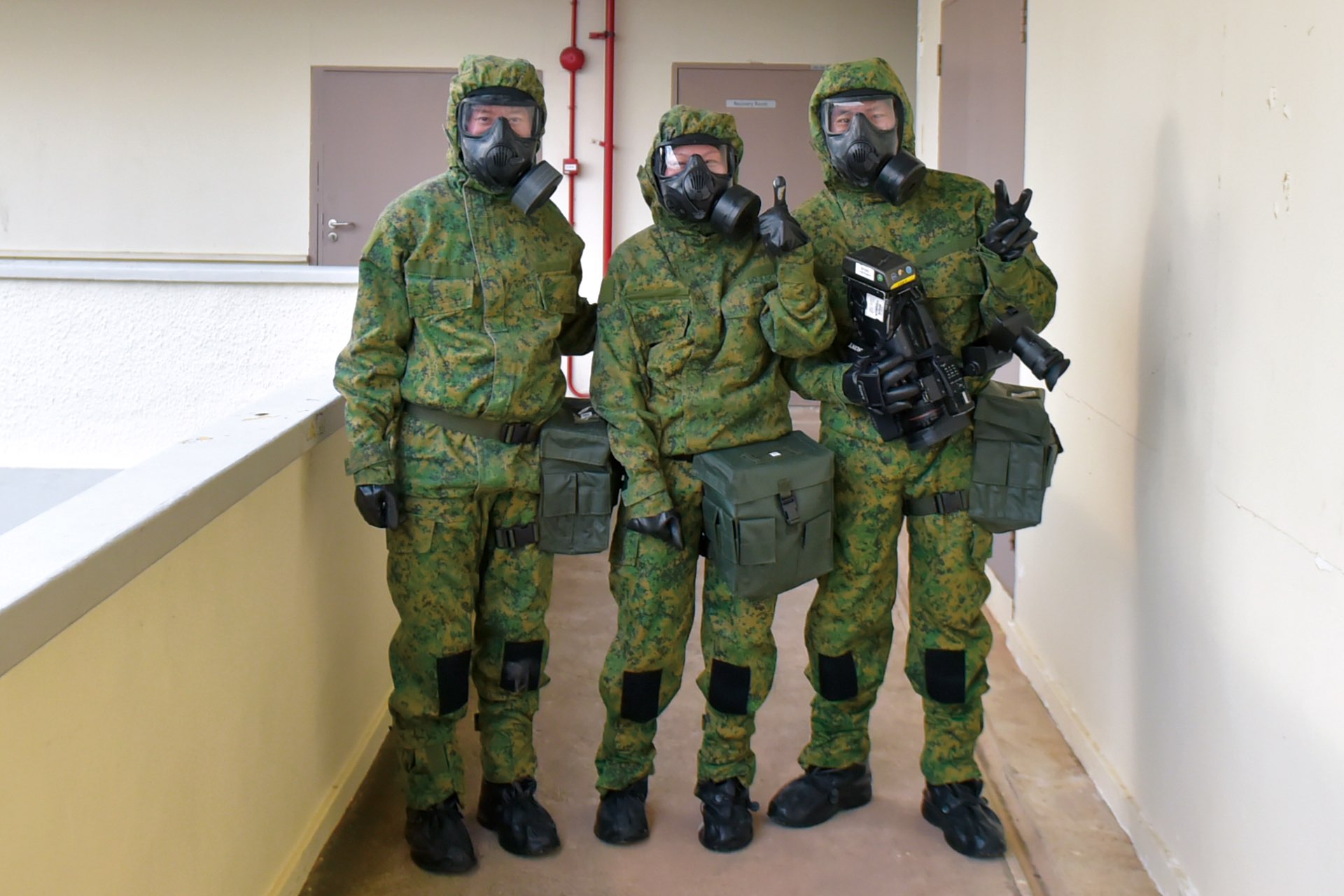 All combat-fit Full-time National Servicemen must undergo this training, which helps them to build confidence in operating in a chemical-contaminated environment.