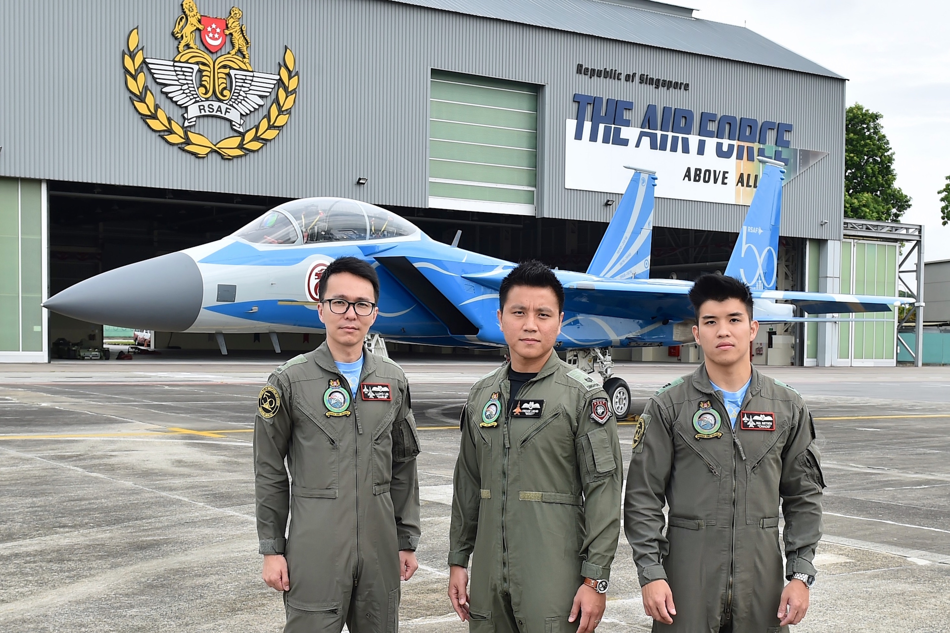 The RSAF50-liveried F-15SG will be piloted by Captain (CPT) Paul-Matthew Lim from 149 Squadron (SQN). "Timing and coordination with the ground and air crew is very important, as I will have to come in right after the two F-16 pilots finish the drawing of the heart," said the 30-year-old pilot.