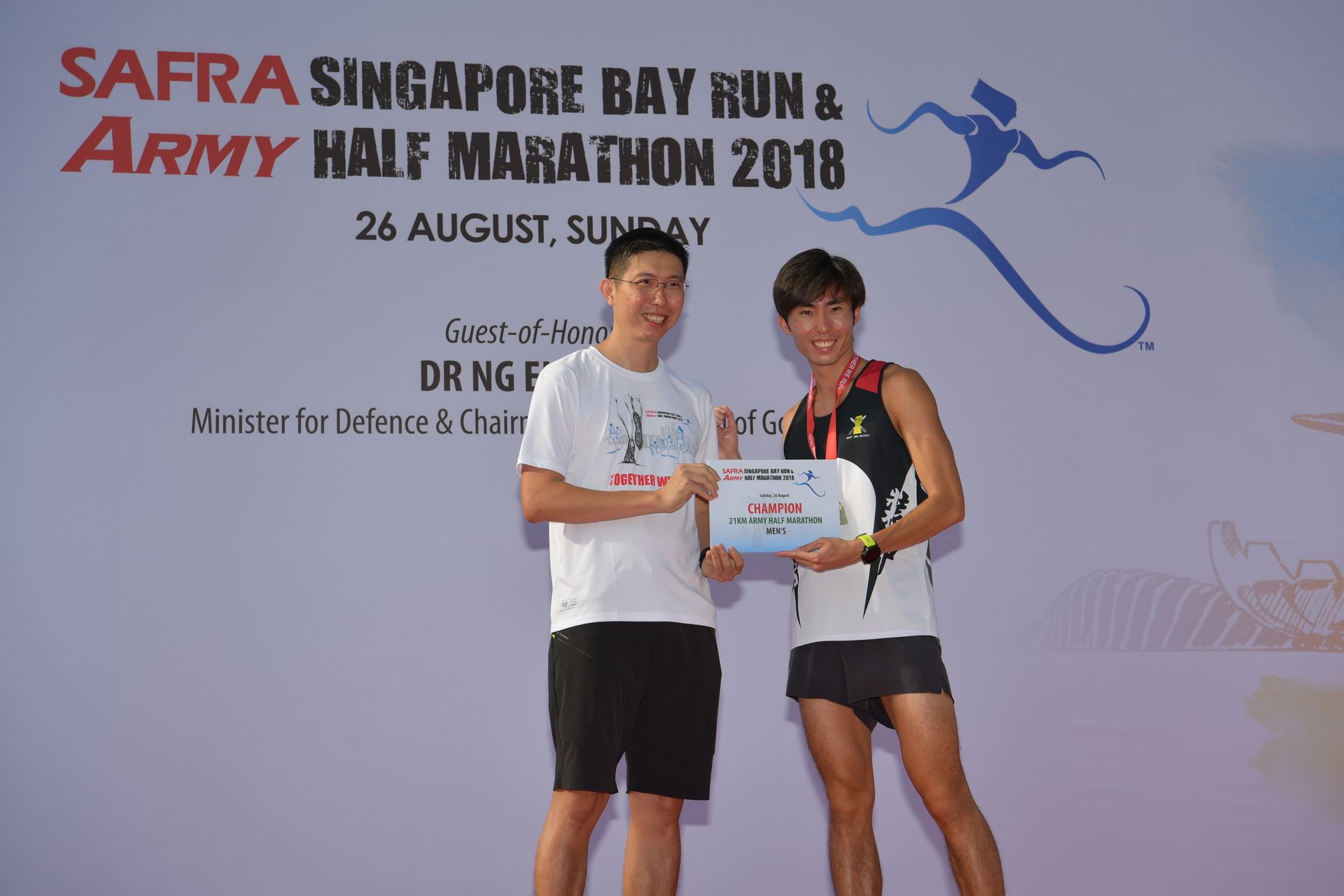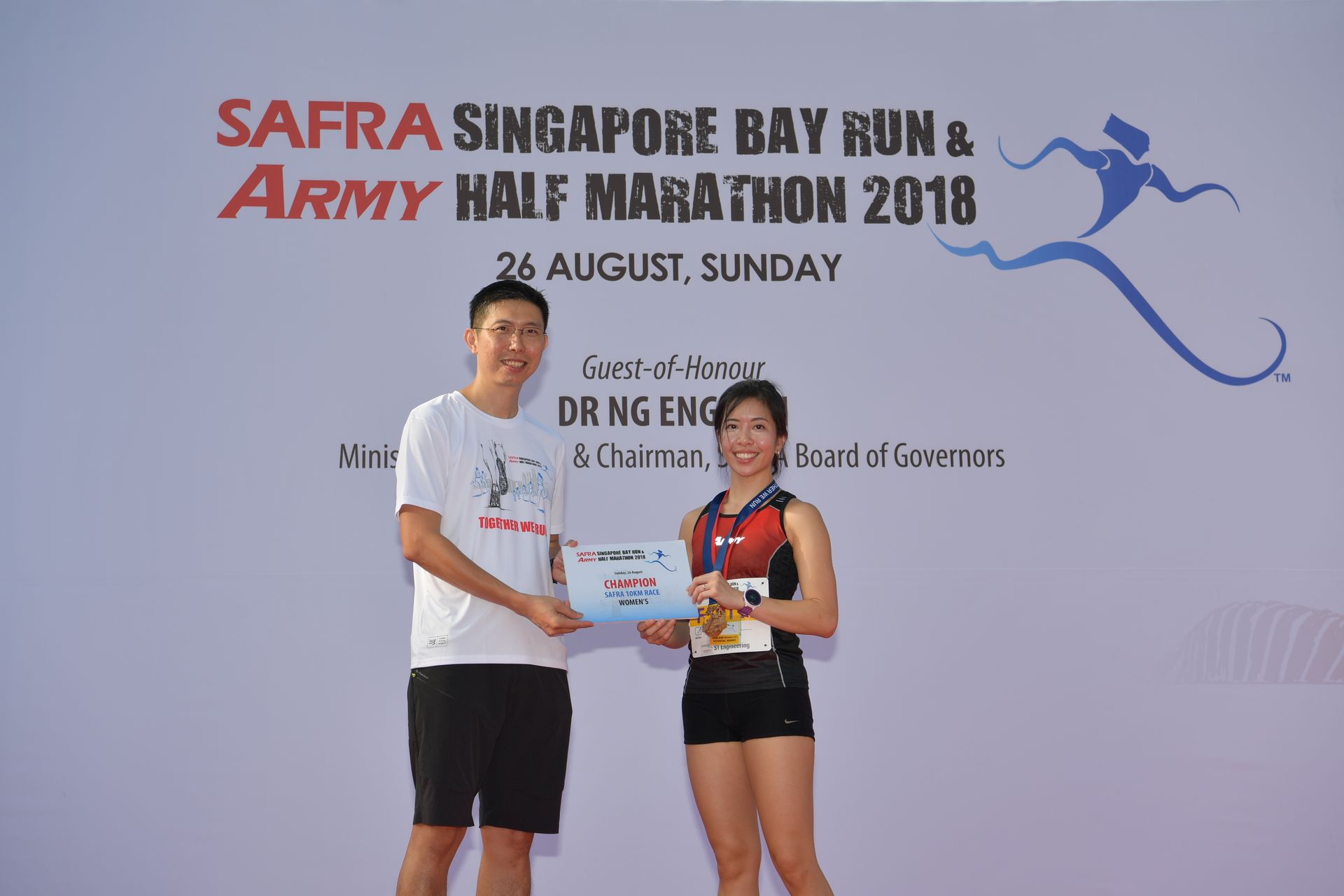 Also at the event was Minister for Defence and Chairman of the SAFRA Board of Governors, Dr Ng Eng Hen, who presented the trophy prizes to the winners of the half marathon.
