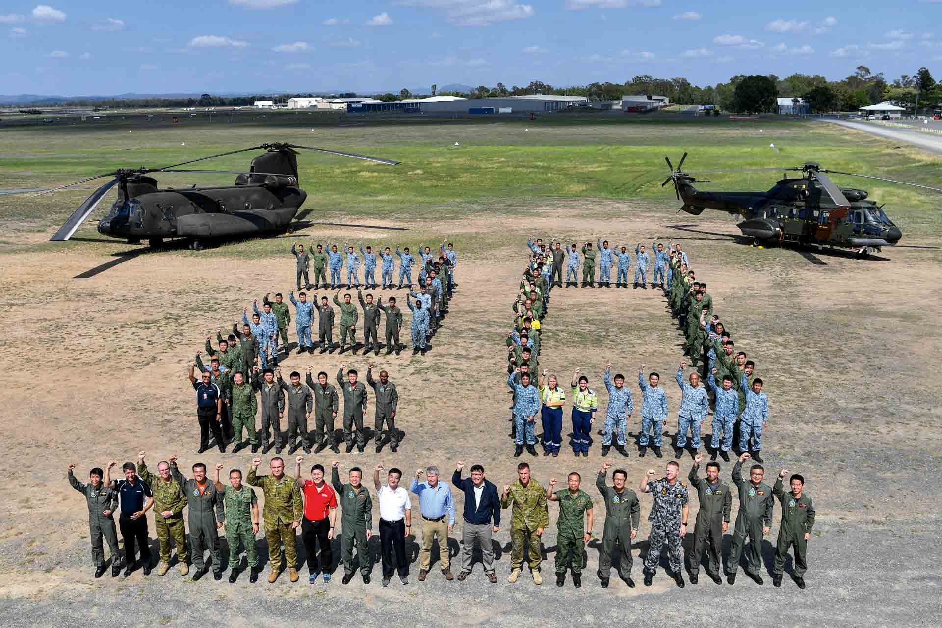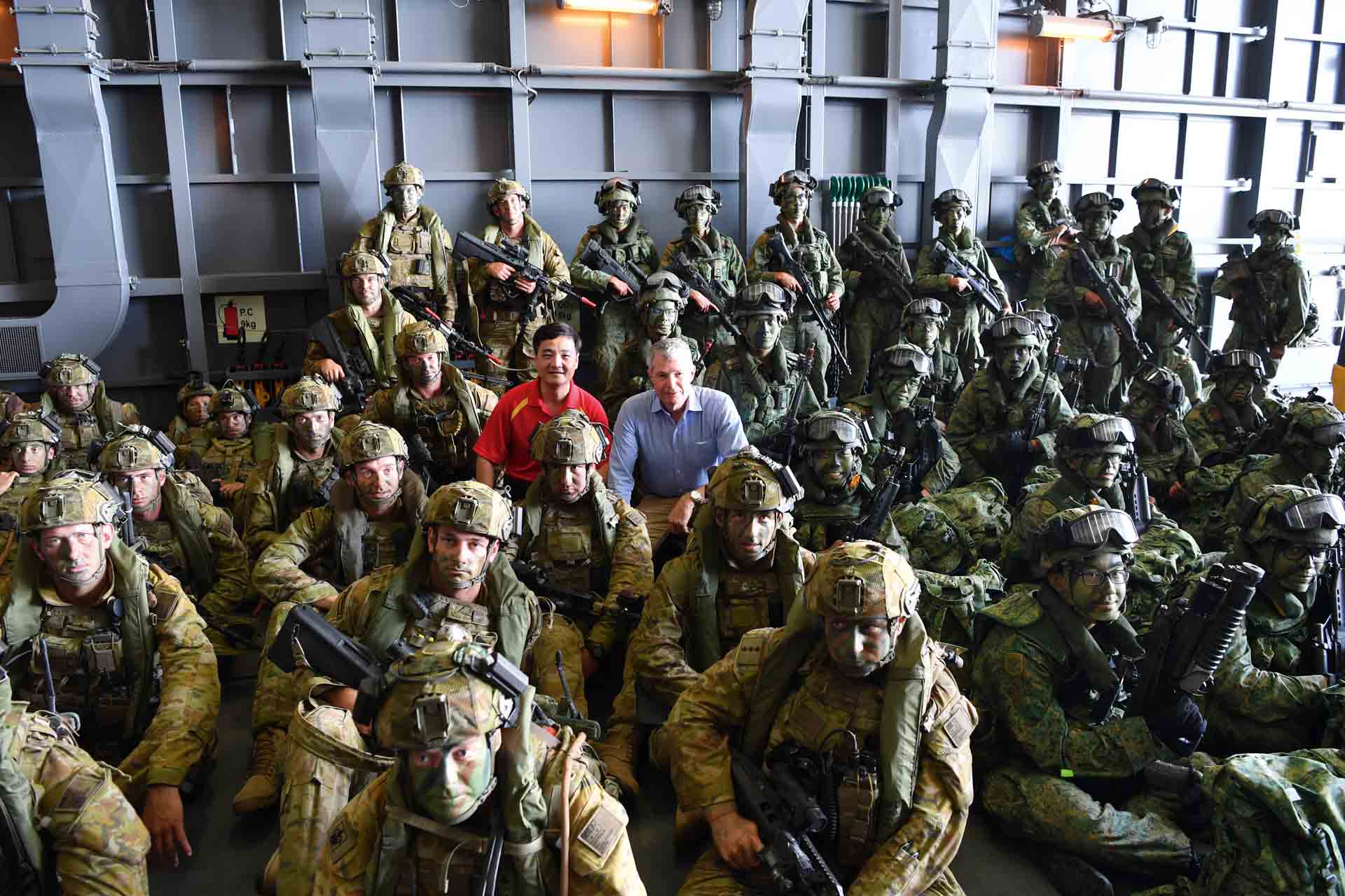 Di dalamnya terdapat Angkatan Tentera Singapura dan Pasukan Pertahanan Australia (ADF), yang dibawa oleh helikopter Chinook dan AS332 Super Puma Tentera Udara Republik Singapura (RSAF).