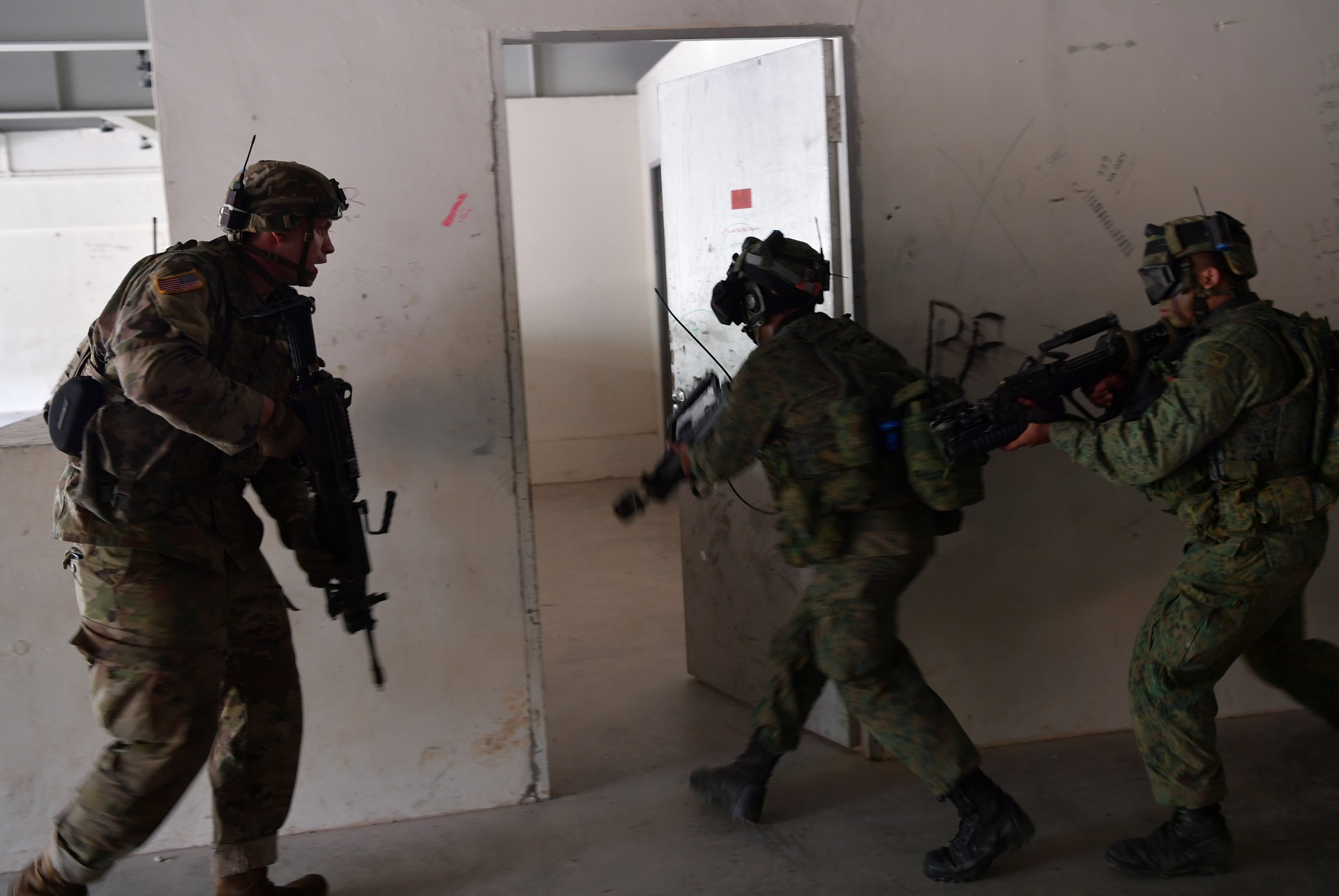 Di tempat lain, sekumpulan askar Tentera Singapura semakin berhampiran. Mereka menuju ke lokasi pertempuran terakhir – "hotel" empat tingkat. Dua kenderaan Terrex sedang berkawal di sepanjang laluan ke bangunan itu, menyediakan senjata api untuk memastikan kawasan lapang yang selamat untuk askar-askar AS merentas.