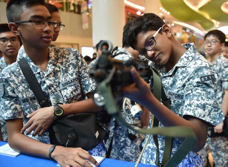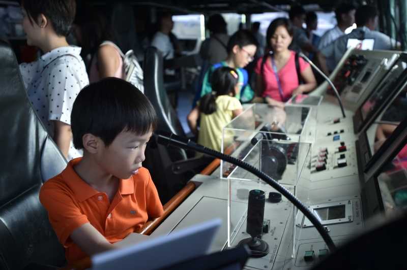 此外,参观者也在近海任务舰艇模拟器上进行射击而获得一些体验。展览上同时展出的还有新加坡海军部队的精英——海军潜水单位——使用的武器和装备。