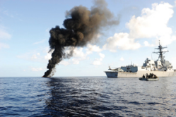 Action taken: Locating MV Evita with the help of a Swedish Maritime Patrol Aircraft (MPRA) from the European Union Naval Force Somalia, the USS Farragut promptly dispatched an SH-60B Seahawk helicopter to monitor the suspected pirates while a boarding team intercepted the skiffs. Fuel drums and grappling hooks were found on board the mother skiff. After ensuring that the suspected Somali pirates were unable to conduct any further attacks, all 11 were released on the two smaller skiffs while the mother skiff was destroyed and sunk.