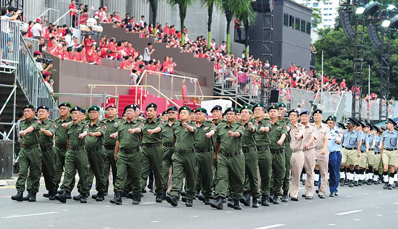 COL (Ret) Goh (Right) leading the Mobile Column in NDP 2015.