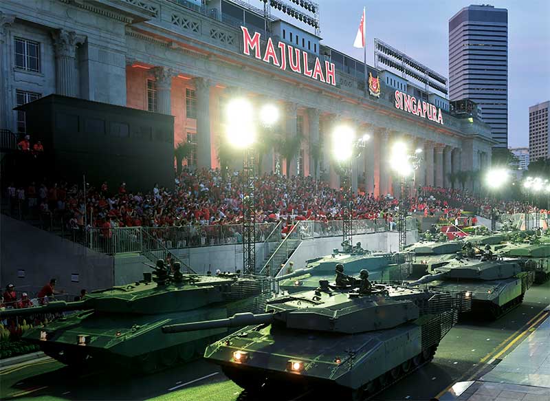 Featuring 177 assets and about 900 personnel, the Mobile Column is a sight to behold. It stretches two kilometres long and takes 14 minutes and 30 seconds to rumble past the Padang. Led by the Leopard 2SG Main Battle Tanks, the Mobile Column will also feature elements such as the Bionix II Infantry Fighting Vehicle and Terrex Infantry Carrier Vehicle. Spectators are in for a treat as the convoy will also consist of never-before-seen vehicles such as the Armoured Engineer Vehicle from the Army and the 40-tonne Specialised Maritime Craft from the Navy.