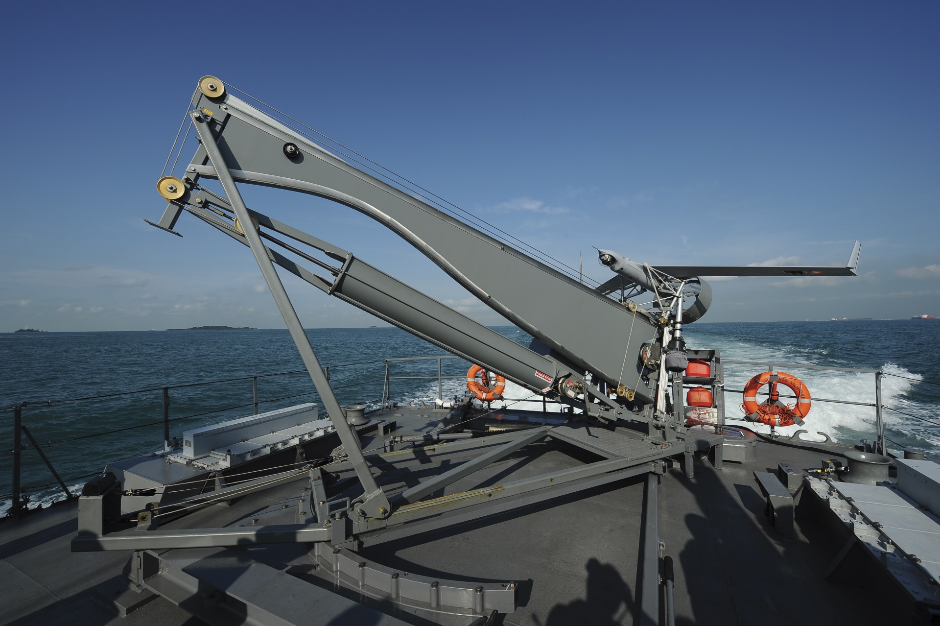 Addition of the ScanEagle UAV system gives the MCV "eyes" beyond the horizon, up to 70km away. This significantly boosts the MCV's surveillance and identification abilities, and contributes to a better maritime situational picture for its crew and deployed naval forces at sea.