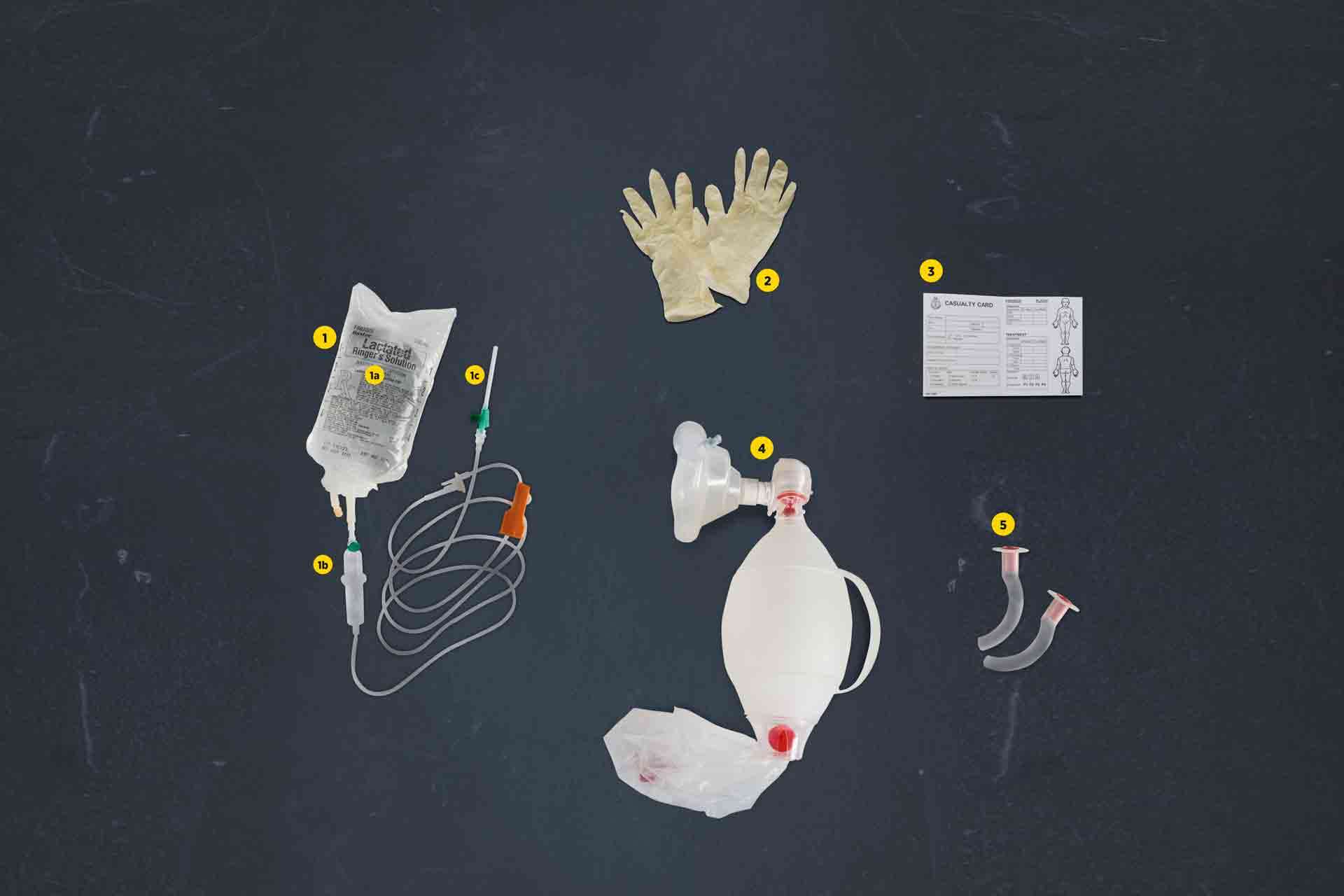 Each medic carries multiple pairs of disposable gloves to protect himself and the casualty from contamination.