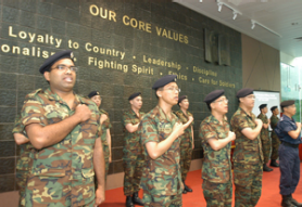 The Singapore Armed Forces' (SAF) seven core values are printed on the wall in brass drawn from expended shell cartridges.