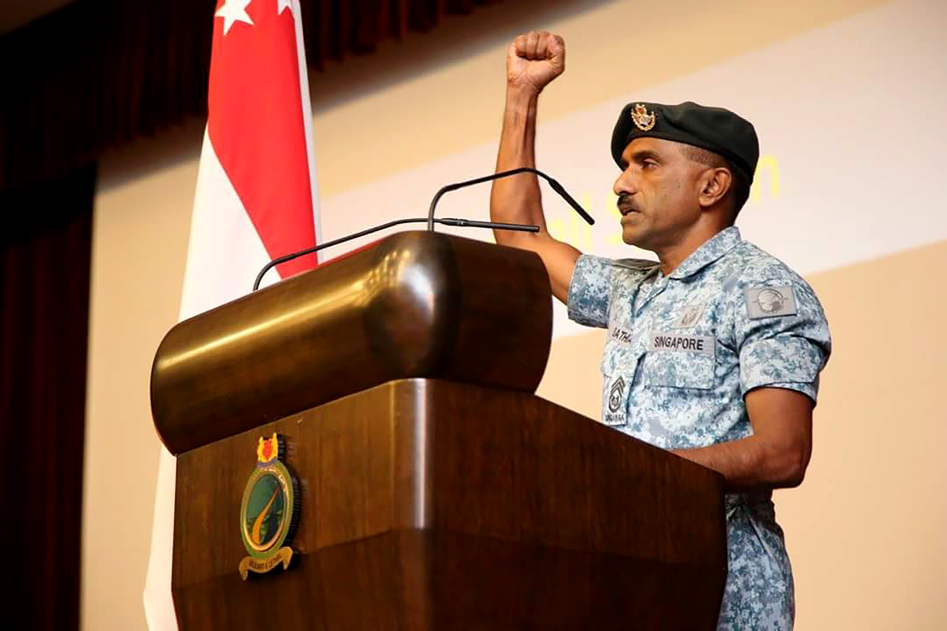 Pada 2013, SWO (Bersara) Sathiamoorthy sedang menjalankan raptai perbarisan tamat kursus untuk sekumpulan kadet pegawai apabila menerima panggilan bahawa anak lelaki yang keduanya telah dimasukkan ke hospital.