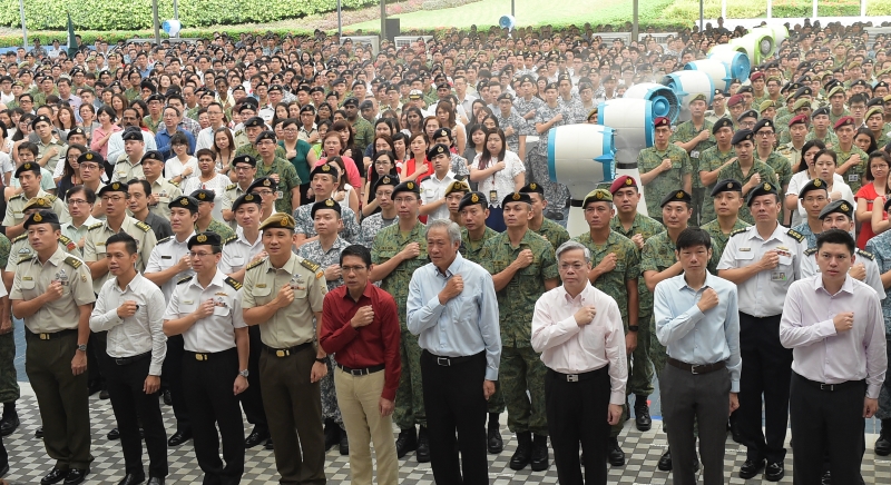 Minister for Defence Dr Ng Eng Hen led the personnel, including senior commanders and officials, to recite the National Pledge and sing the National Anthem at the ceremony.
