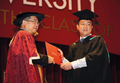 MAJ Chan (right) receiving his scroll at his convocation held at UniSIM on 4 Oct.