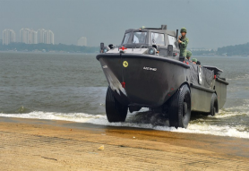 As always, safety is paramount when operating the LARC V - a craft that measures more than 10m in length. "On land and water, we always have other crew members helping us to keep a lookout to ensure that we stay safe," said Lance Corporal (LCP) Ananth s/o Asogan.