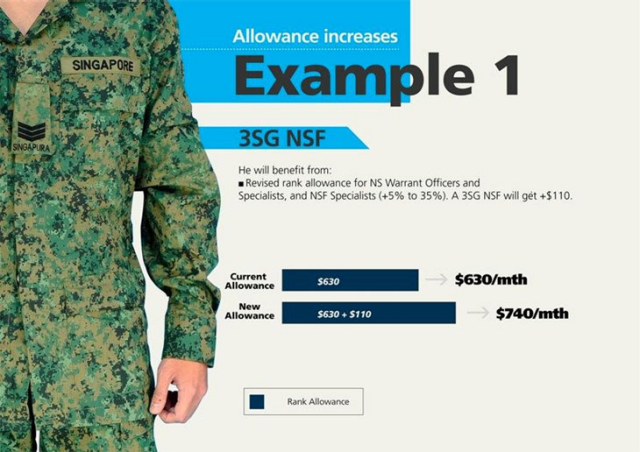 Among them is Third Sergeant (3SG) Sreedharan, an NSF ammunition technician from the Singapore Armed Forces Ammunition Command. He will receive an extra $110, a substantial increment of about 17 per cent from his current rank allowance.