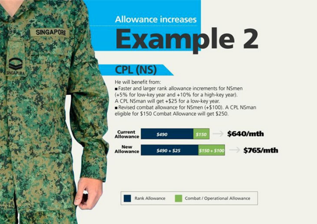 Starting next month, NSmen in combat vocations will also see an additional $100 increase in their monthly combat allowance.