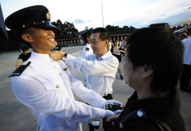 Minister for Transport and Second Minister for Foreign Affairs Lui Tuck Yew, who reviewed the commissioning parade, reminded the graduands of what it meant to be an officer: "With this high honour of being an officer of the SAF (Singapore Armed Forces), comes the important responsibility of training the men and women under your charge, and leading them into battle when you are called upon to defend Singapore."