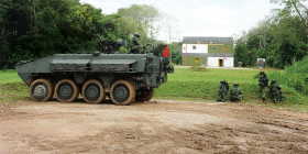 Back at the target building, the Close Cover Group takes over. While troops are still firing the GMPG from the CFB, another Terrex ICV pulls up nearer to the enemy building. Troops unload, armed with the Matador, a disposable anti-armour weapon system, and begin to fire, taking down enemy reinforcements on wheels. Once the assaulting troops are confident that they have the upper hand, two other Terrex ICVs arrive at the building to unload soldiers and then speed off.