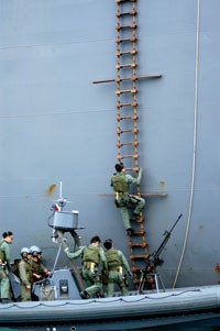 The oil terminals are located a few miles off the coast of Iraq and are constantly surrounded by fishing boats or dhows. These small but fast vessels pose the main security threat since they may not be picked up by the radar, giving the security forces less time to react.
