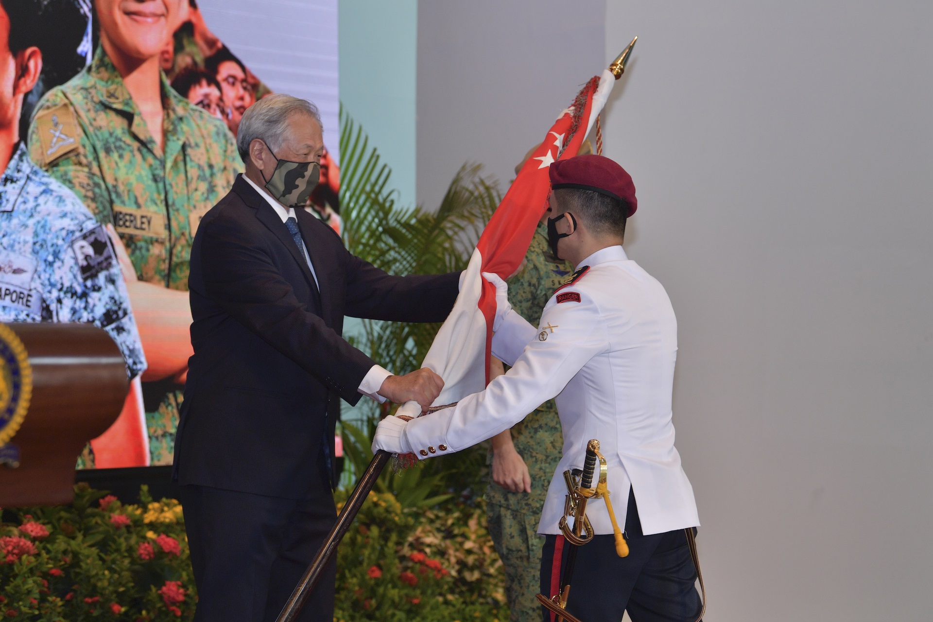 Semasa majlis sambutan tersebut, Dr Ng telah menyampaikan State Colours kepada Unit Tempur Terbaik - Batalion Komando Pertama - sementara Panglima Pasukan Pertahanan, Leftenan-Jeneral (LG) Melvyn Ong, memimpin anggota SAF dalam melafazkan ikrar SAF.