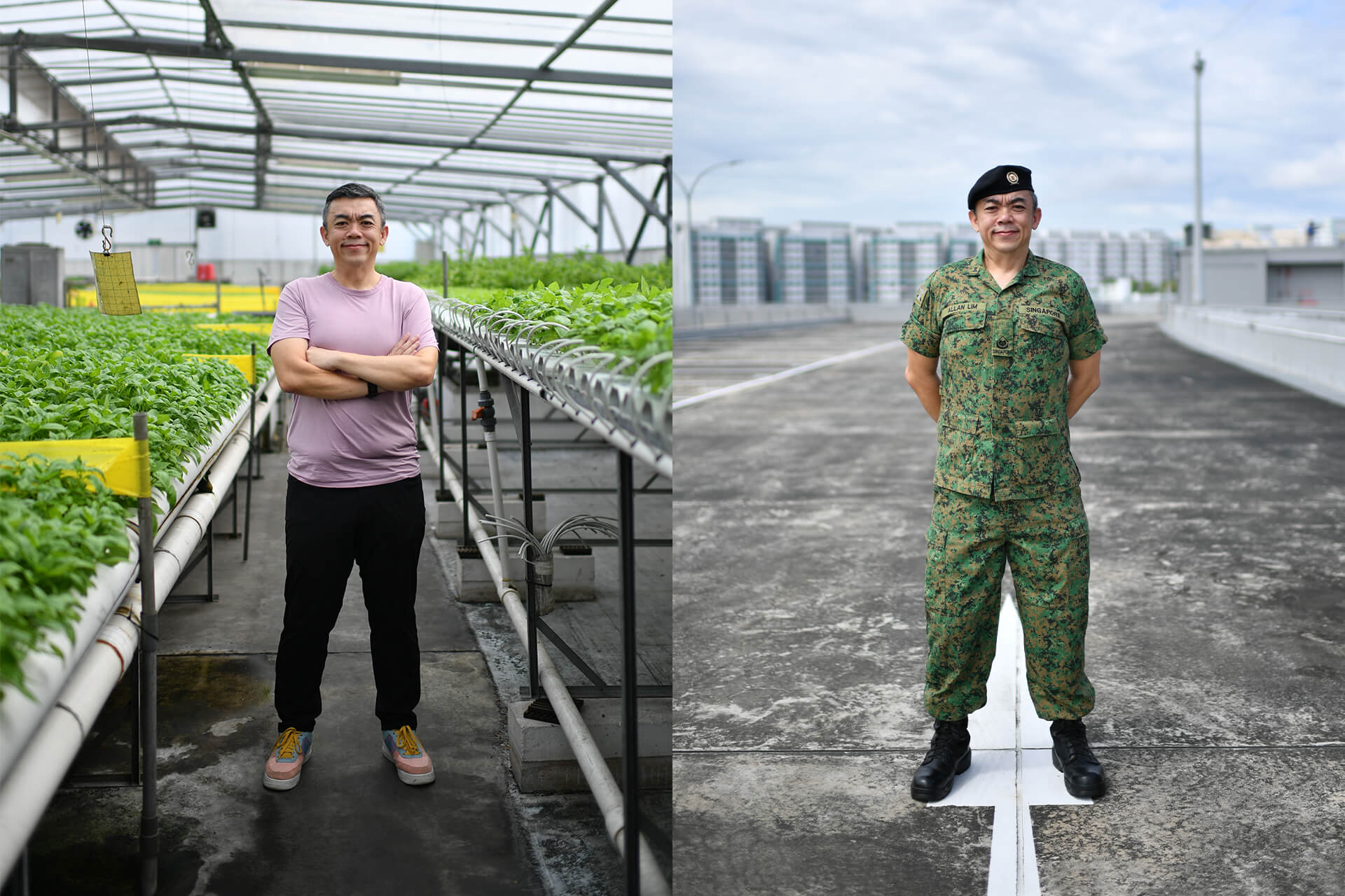 Pengasas ComCrop Allan Lim bukan sahaja memainkan peranan dalam mengukuhkan daya tahan makanan Singapura, malahan beliau menawarkan diri untuk terus berkhidmat dalam Perkhidmatan Negara untuk mempertahankan negara.