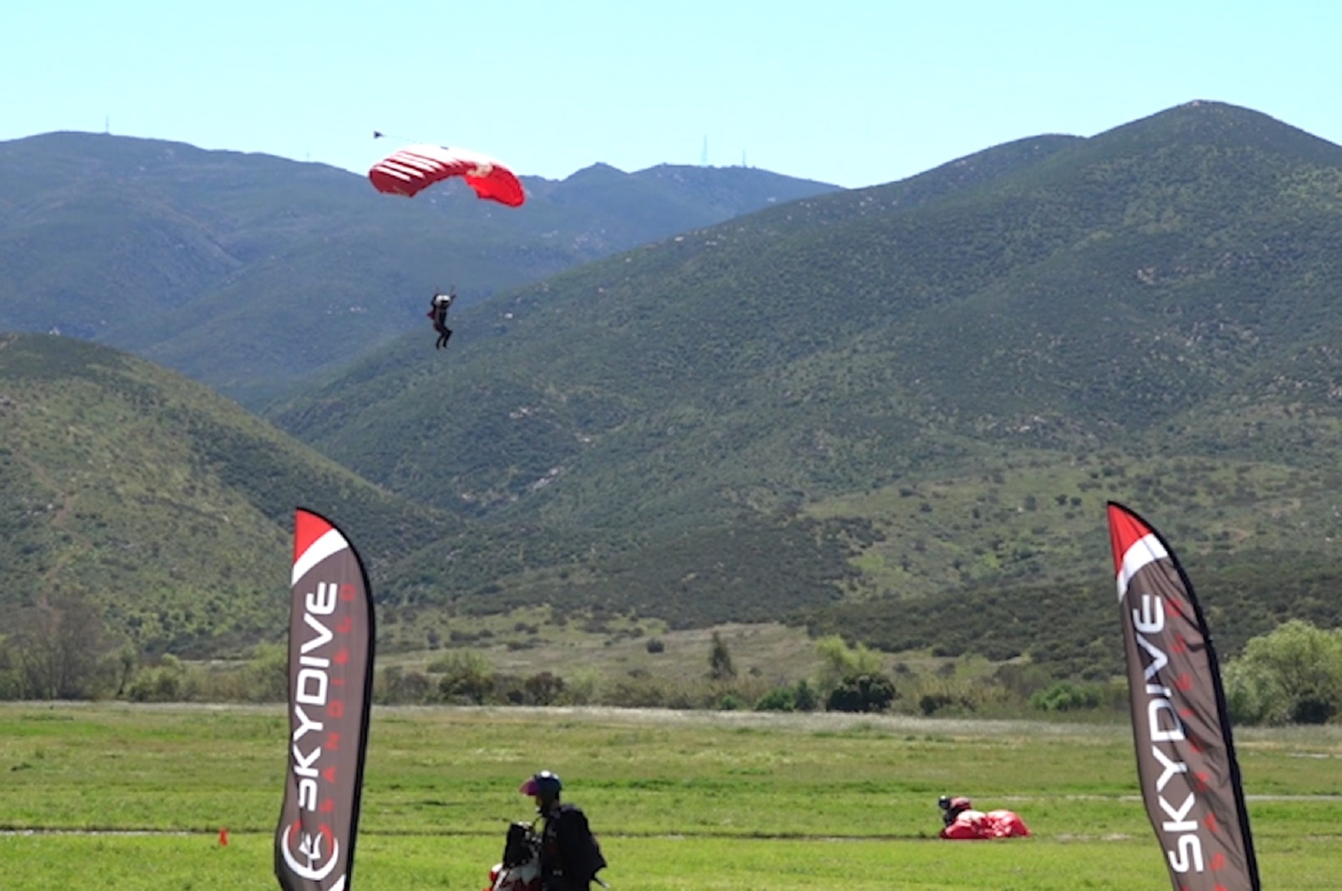 Dia kemudian melakukan Kejatuhan Pendaratan Payung Terjun, teknik keselamatan yang diajar kepada ahli payung terjun untuk membantu mereka melesapkan kesan pendaratan keras dan mengurangkan kemungkinan berlakunya kecederaan.