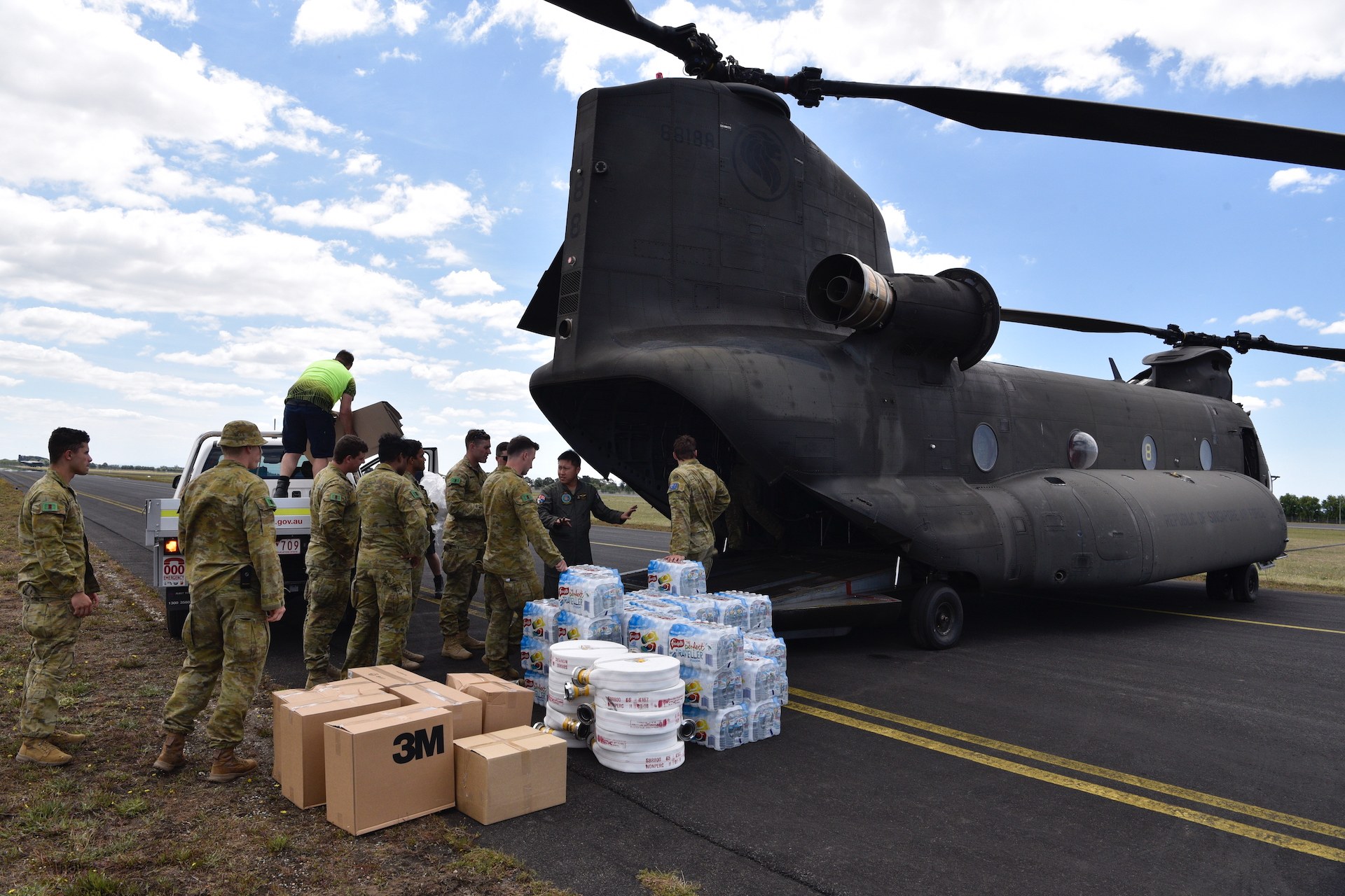 Dengan kelengkapan dua helikopter CH-47 Chinook, anak-anak kapal membantu membawa personel perkhidmatan kecemasan—termasuk askar ADF, pasukan polis dan bomba—untuk menyokong usaha bantuan dan pemindahan orang awam.