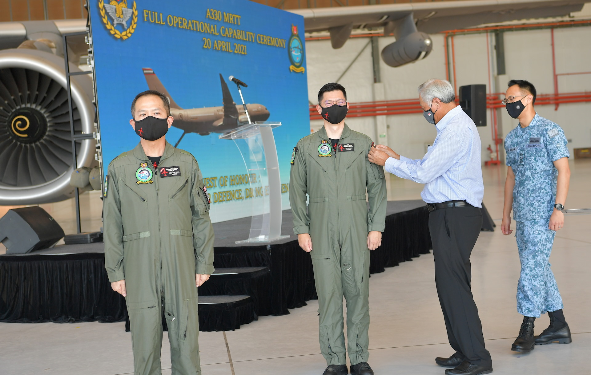 Menteri Pertahanan, Dr Ng Eng Hen, merasmikan upacara menandakan pencapaian status Keupayaan Operasi Penuh (FOC) MRTT A330 oleh Skuadron 112 (SQN) RSAF.