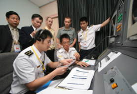 The two-day event culminated in a simulation exercise held at the RSN's Tactical Training Centre at Changi Naval Base, where participants were split into composite teams, each with limited information about the lost vessel. In order to identify the target and to track it down, they had to share information with each other so as to piece together a collective picture of the sea situation.