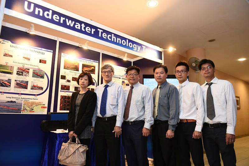 Members of the Underwater Technology Team include (from left) Ms Tong Poh Bee, Program Manager (Underwater Sensor), Dr Lim Leong Chew, founder of MMT, Mr Goh, Mr Lim Cheah Siang, Program Manager (Marine System), Dr Ong Kai Wei, System Engineer (AUV) and Mr Nyang Koon Meng, Senior Defence Researcher.