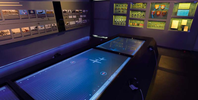 Complementing these historical displays is a new, high-tech interactive display table. Instead of just reading from a static display, visitors can use the table's massive touchscreen displays to drag and drop digital pictures of the RSAF's aircraft onto specific "drop zones" to learn more of their technical specifications.