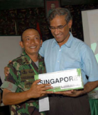 After viewing the modular building SAF engineers are constructing at the TNI barracks at POSKO, parliamentarians from both countries also symbolically handed over relief aid to the TNI garrison officer in Meulaboh, Kol Geerhan.