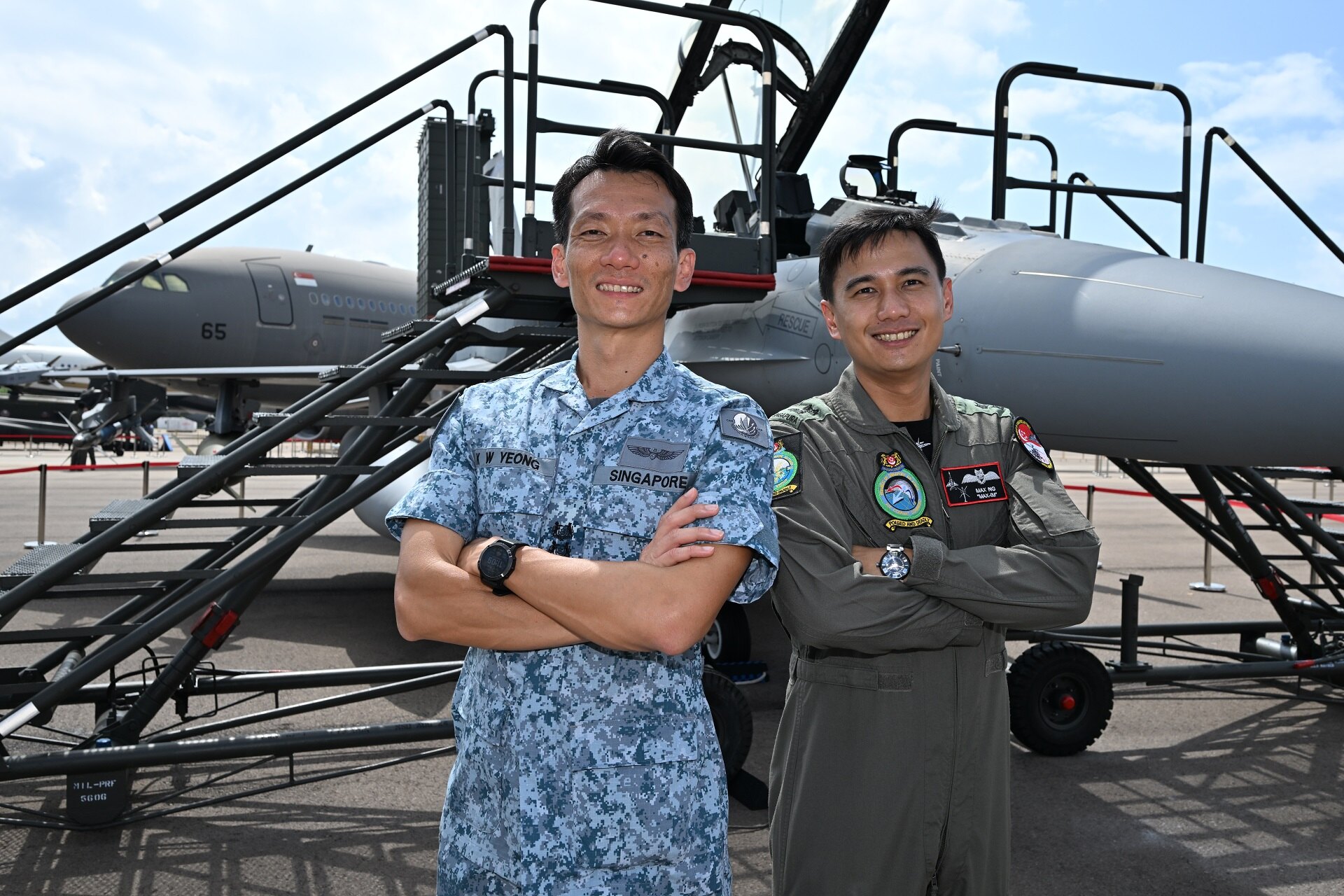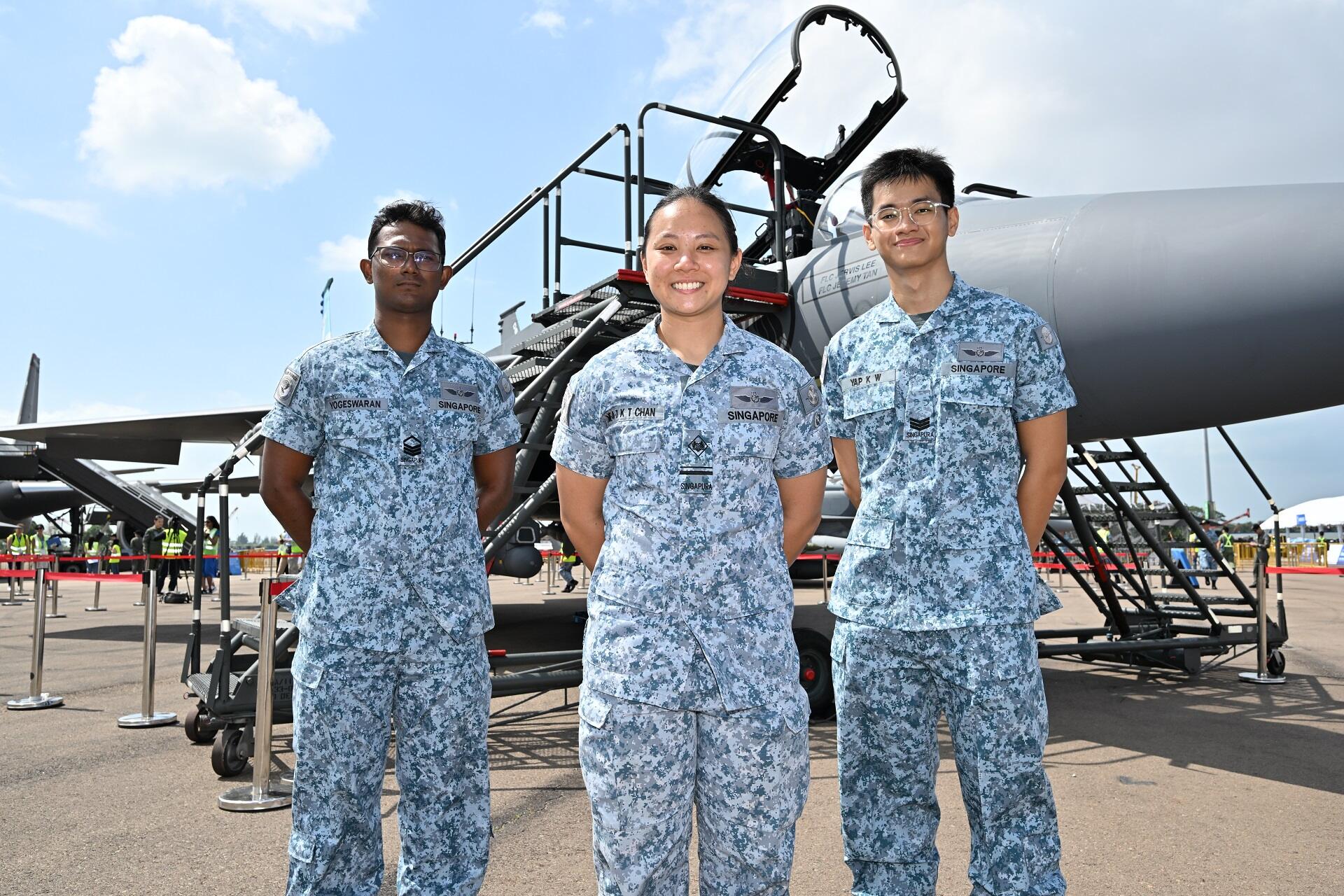 Sarjan Kedua (2SG) Yogeswaran S/O Murugas, 26, merupakan sebahagian daripada pasukan yang menunda pesawat pejuang dan MRTT dari Pangkalan Udara Changi (Kiri) ke CEC.