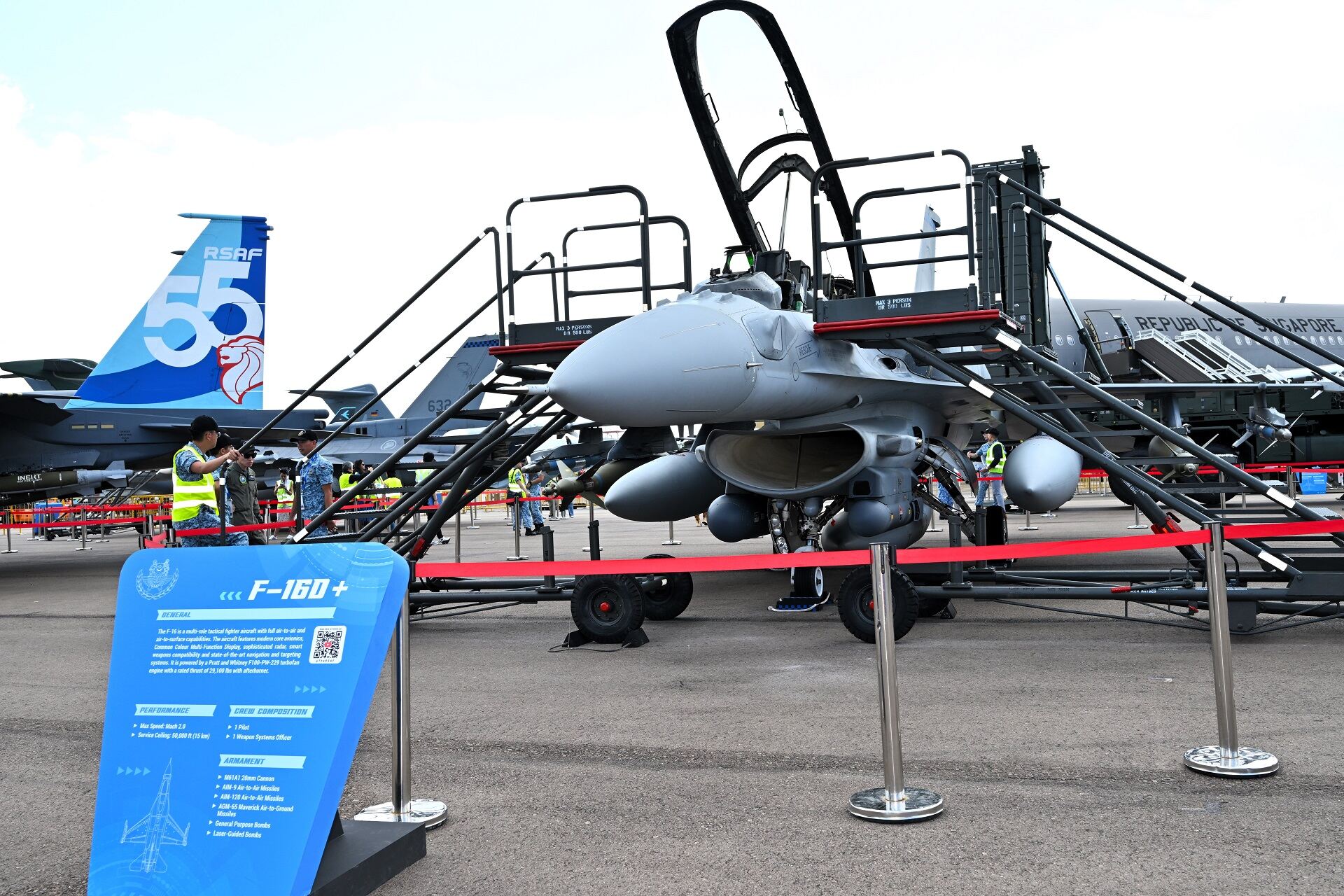 Pelawat yang bermata tajam juga boleh mencari jalur ekor khas pada F-15SG yang direka bentuk tahun lepas untuk ulang tahun RSAF yang ke-50.